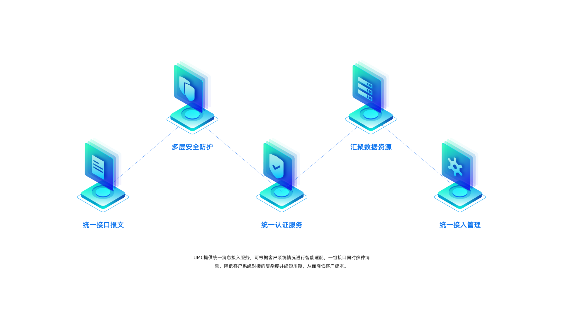 UMC提供統(tǒng)一消息接入服務(wù),可根據(jù)客戶系統(tǒng)情況進(jìn)行智能適配,一組接口同時多種消息,降低客戶系統(tǒng)對接的復(fù)雜度并縮短周期,